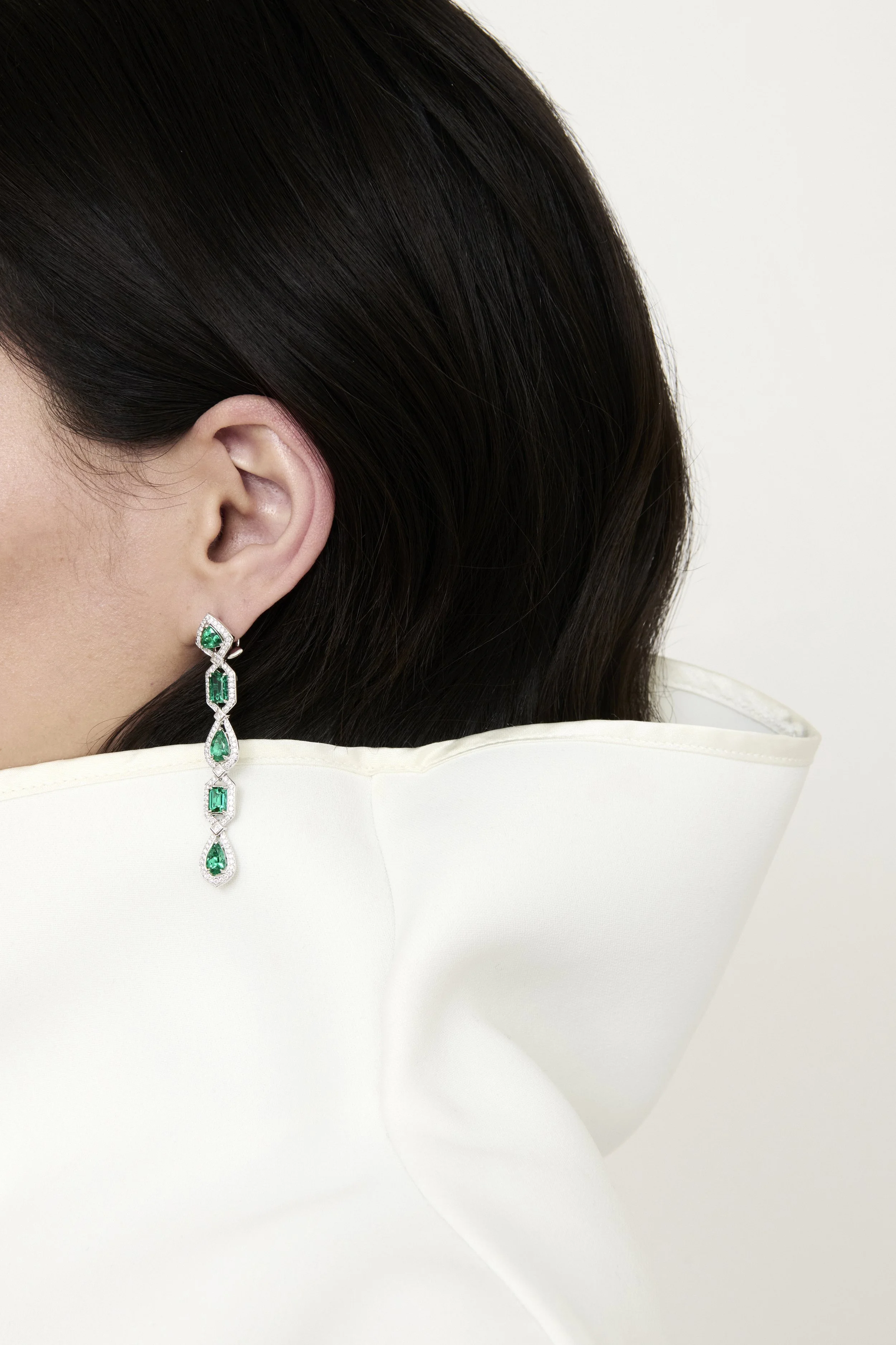 A tribute to Old World elegance, these exceptional Muzo Colombian emerald earrings showcase 5.53ct of emeralds per side, arranged in three distinct cuts, each chosen for its vivid intensity and unmistakable character. In high jewellery, curating perfectly matched emeralds of this caliber is extraordinarily challenging; stones with such depth, richness, and vibrancy are scarcely seen in today’s market.