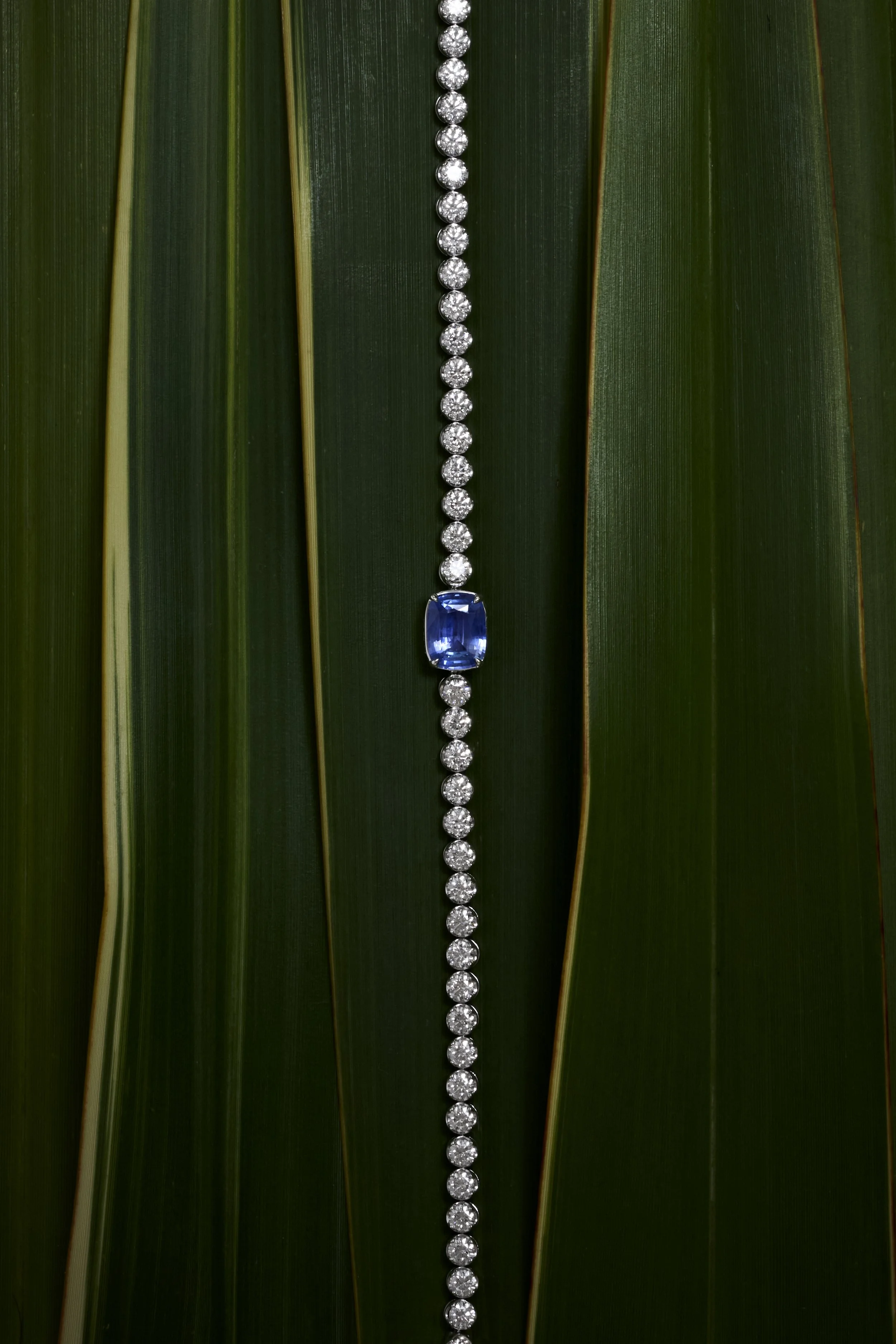 A timeless classic with a modern rush of color, this tennis bracelet centers on a rare 2.04ct unheated Ceylon sapphire, its natural, vivid blue shining with effortless sophistication. Framed by 4.71ct of brilliant D Flawless diamonds, the sapphire becomes an unforgettable focal point, elevating the bracelet far beyond the traditional.